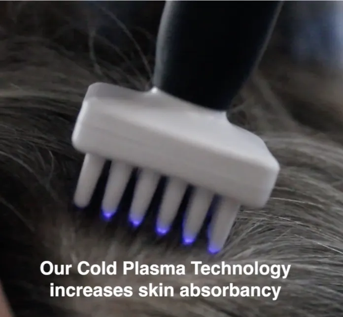 STEP 1. The treatment starts with the Cool Plasma Pen (it's not PRP) its a pen like device we run over the scalp that creates micro-channels in your skin without ANY pain.
